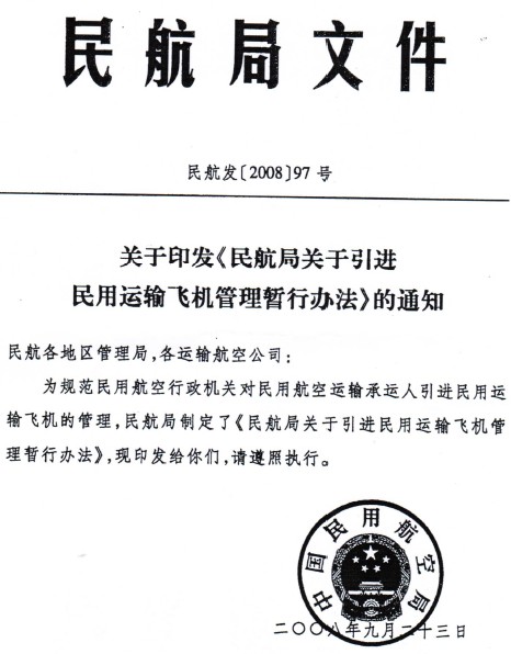 民航局關(guān)于引進(jìn)民用運(yùn)輸飛機(jī)管理暫行辦法