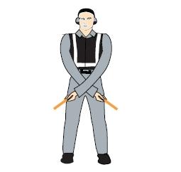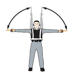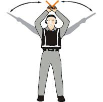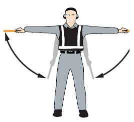 雙臂水平外伸,掌心朝下,向下招手,雙臂移動速度表示上升率大小 向下移動(下降高度) 一臂水平指向右側(cè), 另一臂反復向所指方向揮動,示意直升機應向左移動(轉(zhuǎn)向)向左移動(轉(zhuǎn)向) 一臂水平指向左側(cè), 另一臂反復向所指方向揮動,示意直升機應向右移動(轉(zhuǎn)向)向右移動(轉(zhuǎn)向)