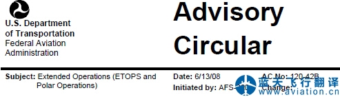 北京藍(lán)天飛行翻譯公司完成國有大型航空公司的延程運(yùn)行(ETOPS和極地運(yùn)行)咨詢通告翻譯任務(wù) Extended Operations (ETOPS and Polar Operations) Advisory Circular Translation