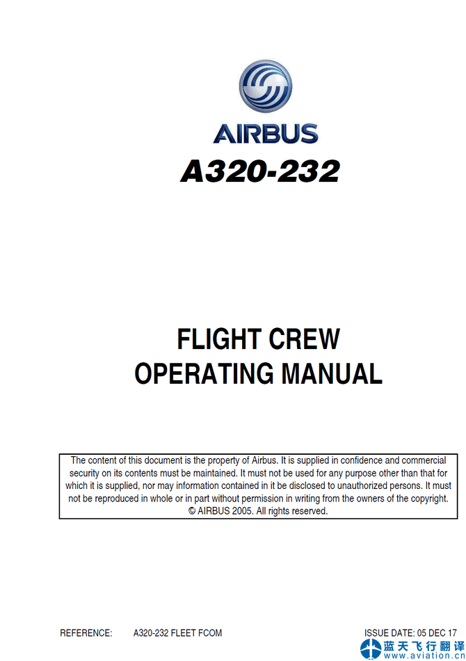 北京藍(lán)天飛行翻譯公司承接大型航空公司2017年12月5日版本空客A320-232機(jī)型飛行機(jī)組操作手冊翻譯任務(wù) A320-232 FLIGHT CREW OPERATING MANUAL Translation