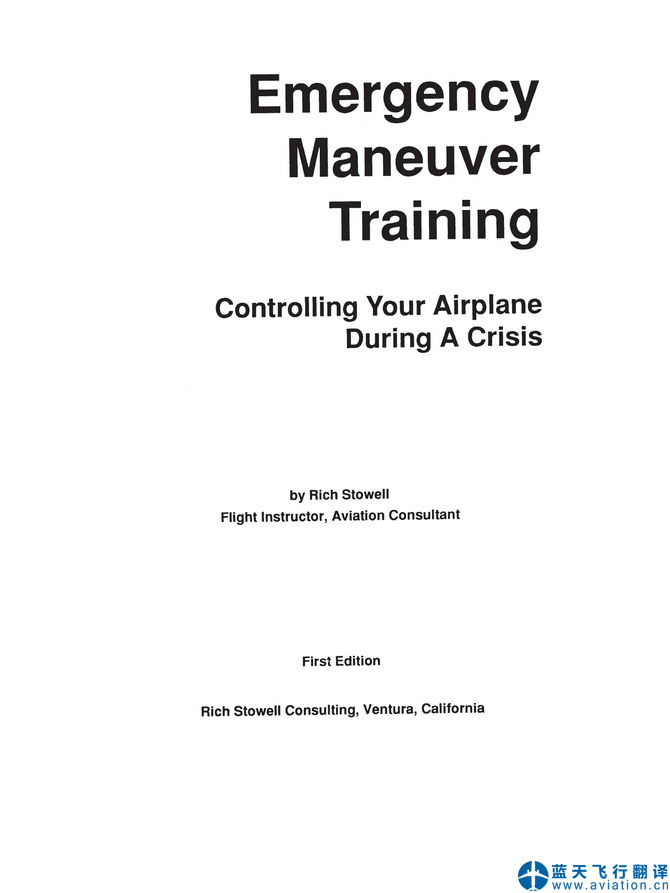 藍天飛行翻譯公司承接大型航校緊急機動飛行訓練手冊翻譯任務 Emergency Maneuver Training Manual Translation ![]() ![]() 緊急機動飛行訓練手冊 Emergency Maneuver Training Manual 緊急機動飛行訓練手冊(Emergency Maneuver Training Manual)的主要內容包含有: Emergency Maneuver Training Basic Aerodynamics Steady Flight Important Ratios Roll, Yaw, and Pitch Roll Yaw Pitch Secondary Roll Effects Secondary Yaw Effects Secondary Pitch Effects Pitch and Power Energy Management The Power Curve Curved Flight Forces in Turns G-Loads The V-g Diagram Helpful Hints Shallow Turns Medium Turns Steep Turns Climbing & Descending Turns Skidding Turns Slipping Turns Turn/Roll Combinations Spirals Final Thoughts Stalls Flying the V-g Diagram Aerodynamic Cues Mechanical Cues Physiological Cues Approach-To-Landing Stall Departure Stall Under-The-Bottom Stall Over-The-Top Stall Prolonged Stall Deep Stall Tail Stall Stall Speed vs. C.G. Flaps Final Thoughts Spins Spin Dynamics Incipient Developed Recovery Inertia Effects Wing Design Fuselage Design Tail Design Pilot-Controlled Variables Power Ailerons Flaps Rudder Elevator Procedure vs. Technique Accelerated Spin Transition Spin Cross-Over Spin Pilot-Induced Flat Spin Overbanked Roll Dynamics V-p & V-g Diagrams Power Push Roll Managing The Airspeed In The Pattern Invisible Tornadoes Aircraft Configuration Effects Atmospheric Effects Separation Elevation Be Prepared Control Failures Ailerons Rudder Elevator Flaps Flutter Glides Weight Wind Turning Flight Airplane Configuration Judging Glide Distance The Glide Envelope Powerplant Failures Power Loss Speed Spot Set-up Loss Of Power Control Off-Airport Landings Engine Restart Evaluating Your Options Flying the Approach The Touchdown The Pilot In Command Situational Awareness Judgment Hazardous Attitudes Stressors See And Be Seen It’s Up To You For More Information EMT® Program Syllabus Bibliography |
