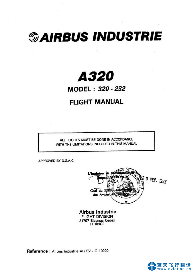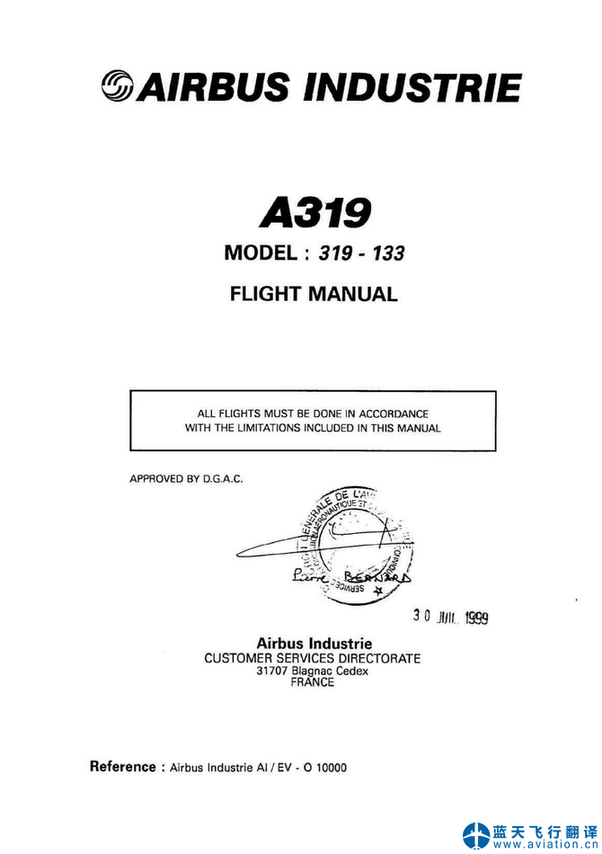 北京藍(lán)天飛行翻譯公司完成航空公司11架空客A319/A320飛行機(jī)組操作手冊(cè)(FCOM FLIGHT CREW OPERATING MANUAL)和AFM飛機(jī)飛行手冊(cè)(AFM AIRPLANE FLIGHT MANUAL)翻譯任務(wù) 11 DEC 19 A319/A320 FLIGHT CREW OPERATING MANUAL and AIRPLANE FLIGHT MANUAL Translation