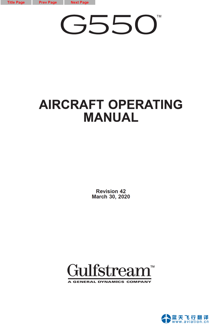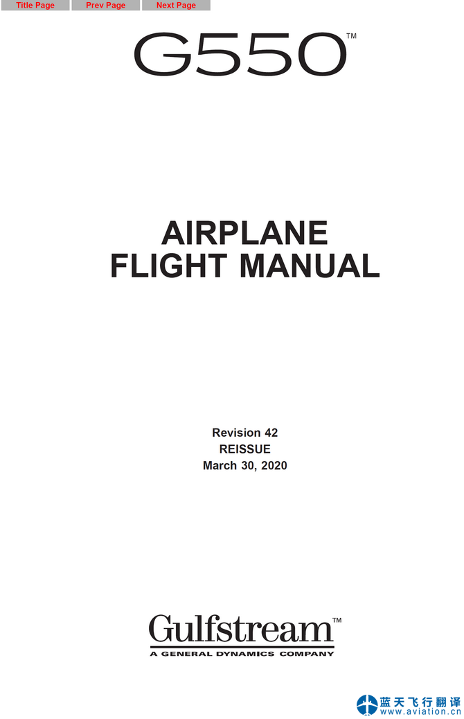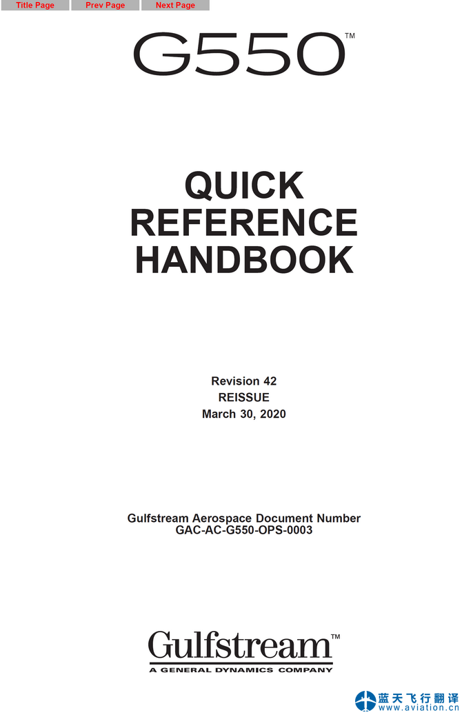 北京藍(lán)天飛行翻譯公司完成大型公務(wù)機(jī)公司的2020年3月30日,第42版灣流G550全套飛行手冊翻譯任務(wù) G550 Flight Manual Translation