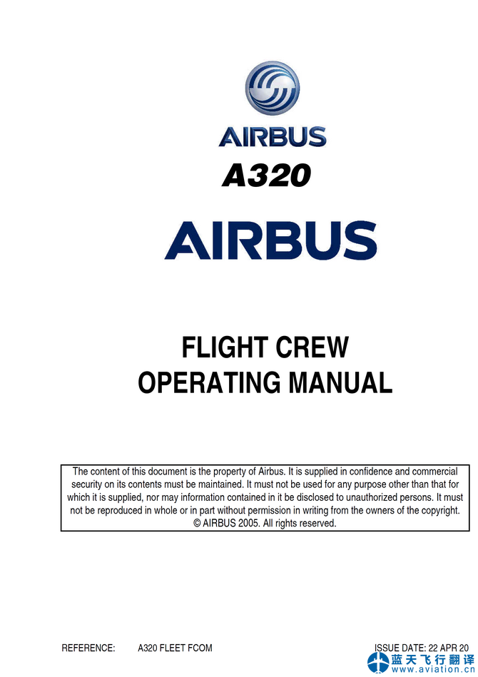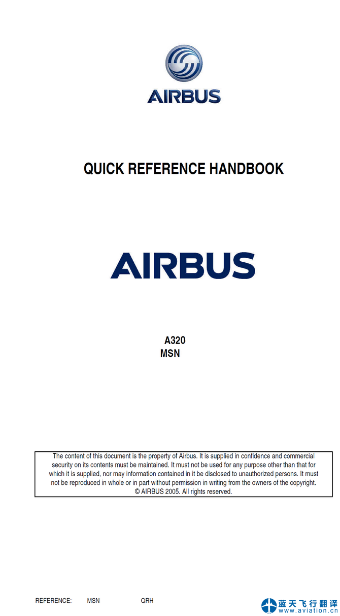 北京藍(lán)天飛行翻譯有限公司完成大型航空公司72架空客A320飛行機(jī)組操作手冊(FCOM FLIGHT CREW OPERATING MANUAL)、A320快速檢查單(QRH QUICK REFERENCE HANDBOOK)和A320飛機(jī)飛行手冊(AIRPLANE FLIGHT MANUAL)翻譯任務(wù) 22 APR 20 A320 FLIGHT CREW OPERATING MANUAL, QRH QUICK REFERENCE HANDBOOK and AIRPLANE FLIGHT MANUAL Translation