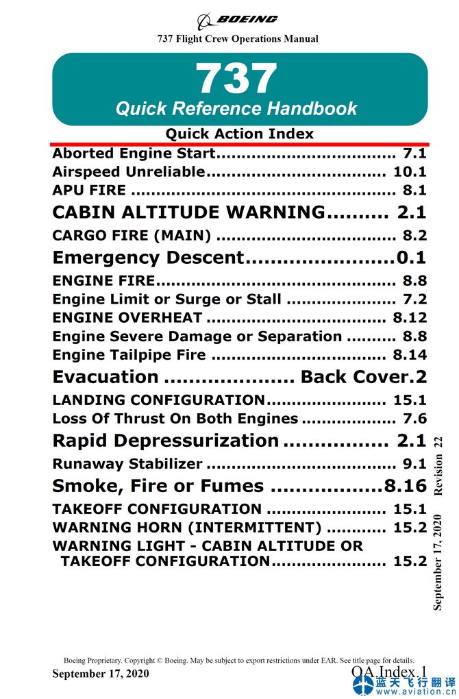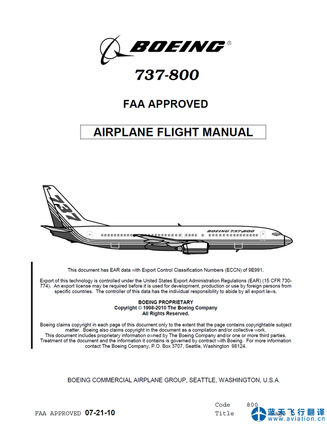 北京藍(lán)天飛行翻譯公司承接航空公司的737-700/-800飛行機(jī)組使用手冊(cè)、快速檢查單和飛機(jī)飛行手冊(cè)翻譯任務(wù) 737-700/-800 Flight Crew Operations Manual, Quick Reference Handbook and Airplane Flight Manual Translation